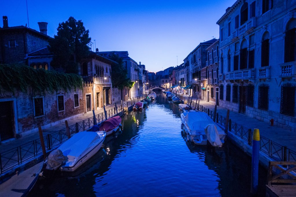 Allmählich zog die Sonne ihren Kreis immer weiter in den Westen. Das Licht wurde gemütlicher, die Häuser warfen ihre Schatten immer länger. Es wurde langsam Zeit, unsere Fahrräder wiederzufinden. Wir gingen durch die beinahe leeren Straßen und die gewohnte Abendruhe legte sich über die Stadt. Jedoch nicht über die gesamte Stadt. Auf den Plätzen standen und saßen ganze Menschentrauben gebannt beeinander. Nils und ich haben mit Fußball so ziemlich gar nichts zu tun. Wirklich nichts. So war es nicht verwunderlich, dass uns entgangen ist, dass gerade die WM lief. Für mich war dies auch weiterhin absolute Nebensache. Und trotzdem war ich glücklich. Glücklich so viele Menschen ohne Masken ausgelassen und doch gebannt beeinander zu sehen. Wir gingen weiter unserer Wege, fanden unsere Räder und zu später, blauer Stunde, überquerten wir die Brücke auf das Festland. Als wir gerade zurück am Bulli angekommen waren, brach der Jubel über uns herein: Italien war Europameister geworden! Es war das Finale, das wir da zu Teilen in Venedig mitbekommen hatten. Hätten wir das geahnt, wären wir wohl noch ein Stündchen länger dort geblieben, um uns von dem ausgelassenen Treiben mitreißen zu lassen.
